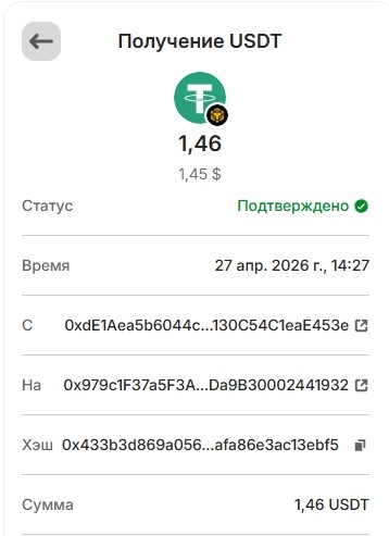 1 USDT 0x4aaaaf1bc5ad715cc17bc52a6ec34757ee2b45bcca0c1b6aca42efcdb6436748