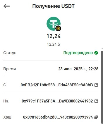 Hello! On your wallet 0x325a7D8B2eE032dad77CB6*** BEP20 USDT withdrawn 1.1 USDT (batch: ?1555067)