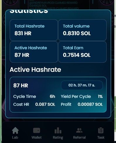 РЕФ. ПРОГРАММА: 10% от прибыли рефералов с первого уровня (при условии личного вклада от 0,05 Sol), при выполнении других условий можно открывать уровни в глубину, подробнее в апке проекта, рефбека тут нет