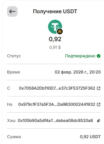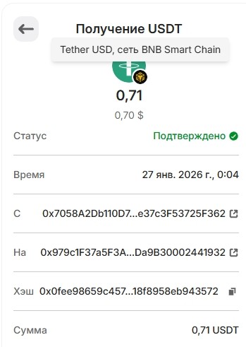 1 USDT 01.03.2026 0xf8c1d68ce5776daf463dff2ff66df8b8ae0cc6f3341d3f1bbf14b418ee463780