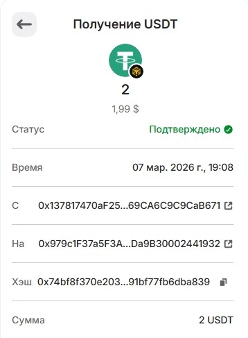 2 USDT 06.03.2026 0xb6937ab52a1ade331a84da32b9beba133c4b1acca2d570408e7d55470e721d79