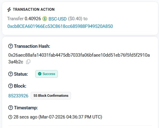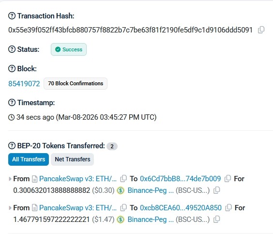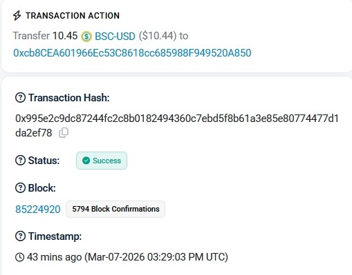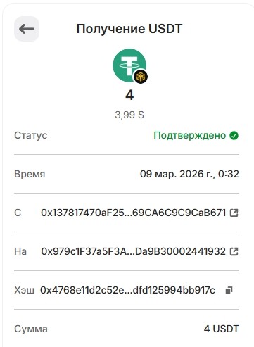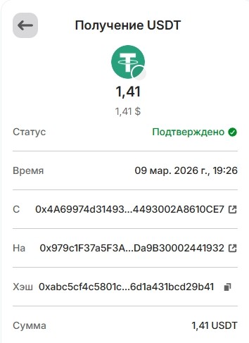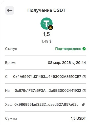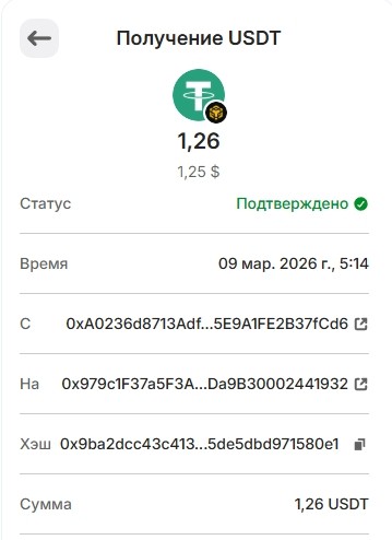 1USDT 08.03.2026 0xe40e84a6e03d8ccda5e060f72fd1eff0400deca7e9562c693e055d699cf0836b