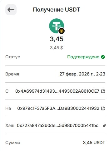 1 USDT 01.03.2026 0xf8c1d68ce5776daf463dff2ff66df8b8ae0cc6f3341d3f1bbf14b418ee463780