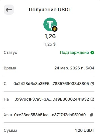 1 USDT 0x4aaaaf1bc5ad715cc17bc52a6ec34757ee2b45bcca0c1b6aca42efcdb6436748