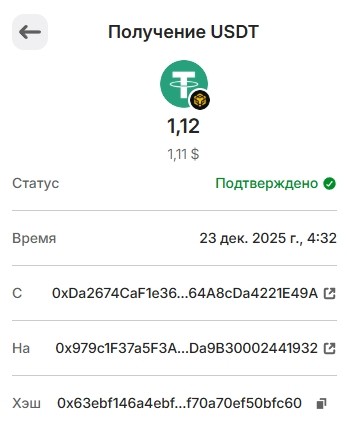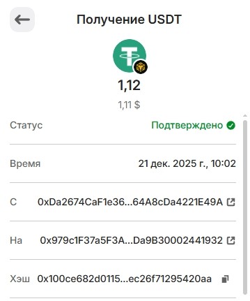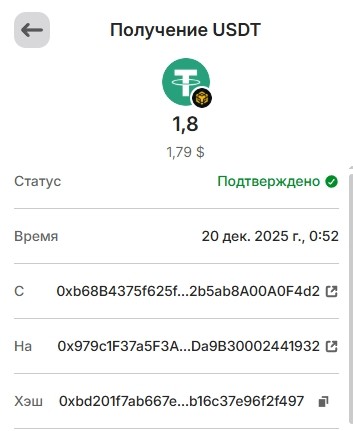 On your wallet 0x325a7D8B2eE032da***** Tether BEP-20 withdrawn 5.2 USDT (batch: ?1337121)