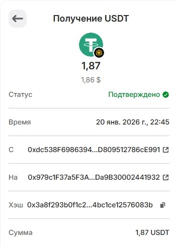 1 USDT 01.03.2026 0xf8c1d68ce5776daf463dff2ff66df8b8ae0cc6f3341d3f1bbf14b418ee463780