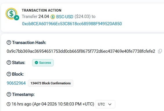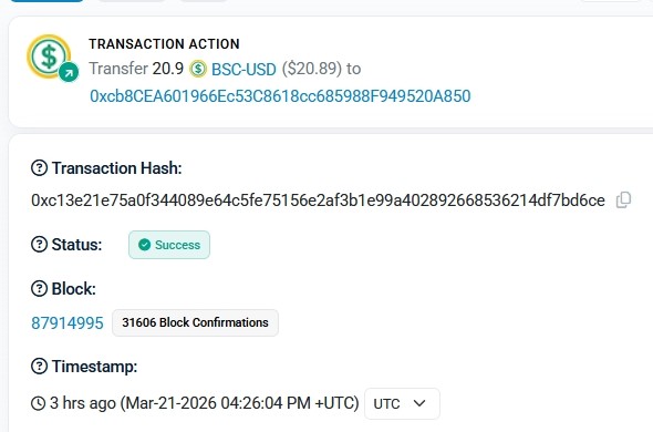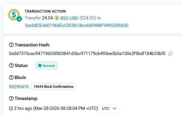 https://bscscan.com/tx/0xd36817f757ff6cae685207f7d72afdde198a1c5c3ca1e0e3416ed9