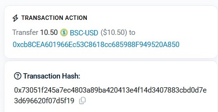 Hello! On your wallet 0x325a7D8B2eE032dad77CB6*** BEP20 USDT withdrawn 1.1 USDT (batch: ?1555067)