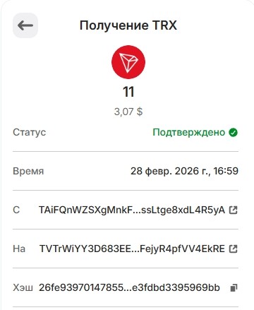 1 usdt 25.02.2026 txid0xccb125e91bde12b7dfe87a5144424007f44d284873d6538ef4784bf72598809a