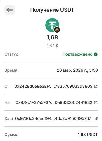 Депозит 20 USDT March 25, 2026, 2:14 pm