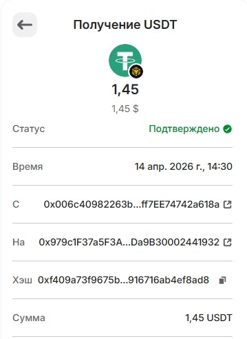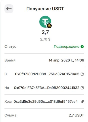 Спасибо за рефбек от eldergarde 0.5 USDT.