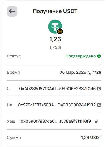 1 USDT 01.03.2026 0xf8c1d68ce5776daf463dff2ff66df8b8ae0cc6f3341d3f1bbf14b418ee463780