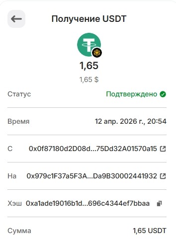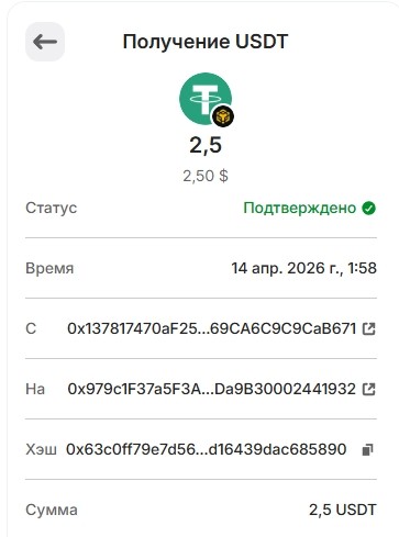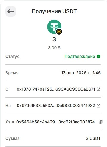 Спасибо за рефбек от eldergarde 0.5 USDT.