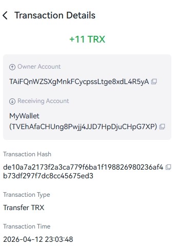 https://tronscan.org/#/transaction/3e31311b4126b2c7e1761e3d1c563b5ece3e6696ced3