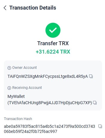 https://tronscan.org/#/transaction/71072b45391fb39edd98d81f9779d93d2ec6442c244a