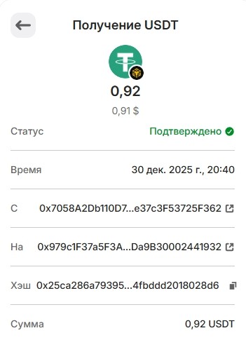 1 USDT 01.03.2026 0xf8c1d68ce5776daf463dff2ff66df8b8ae0cc6f3341d3f1bbf14b418ee463780