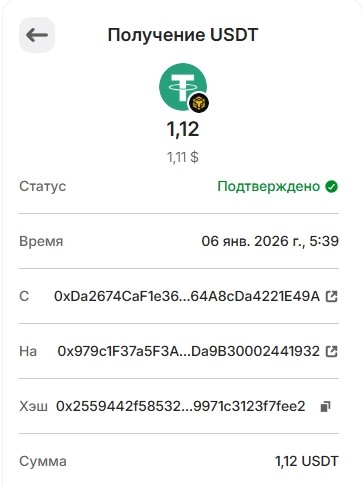 1 USDT 01.03.2026 0xf8c1d68ce5776daf463dff2ff66df8b8ae0cc6f3341d3f1bbf14b418ee463780