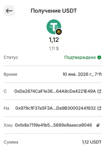 Выплата 1.12 USDT