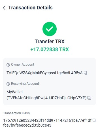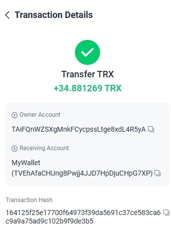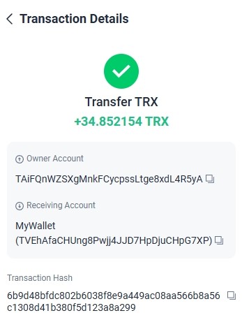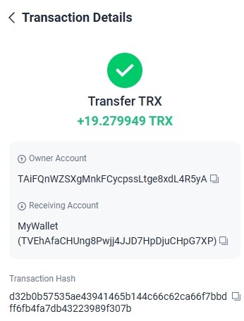https://tronscan.org/#/transaction/d3aaef8b16d93a1662fa29d68a1c80f39b84e232295c