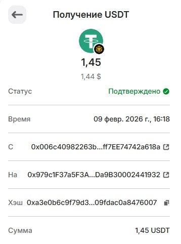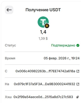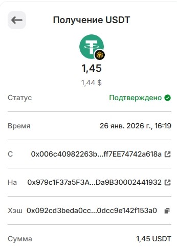 1 USDT 01.03.2026 0xf8c1d68ce5776daf463dff2ff66df8b8ae0cc6f3341d3f1bbf14b418ee463780