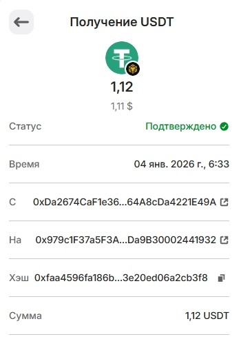 Выплата 1.12 USDT