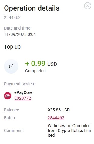 Note: Withdrawal to SecureInvestment from Crypto Botics Limited.